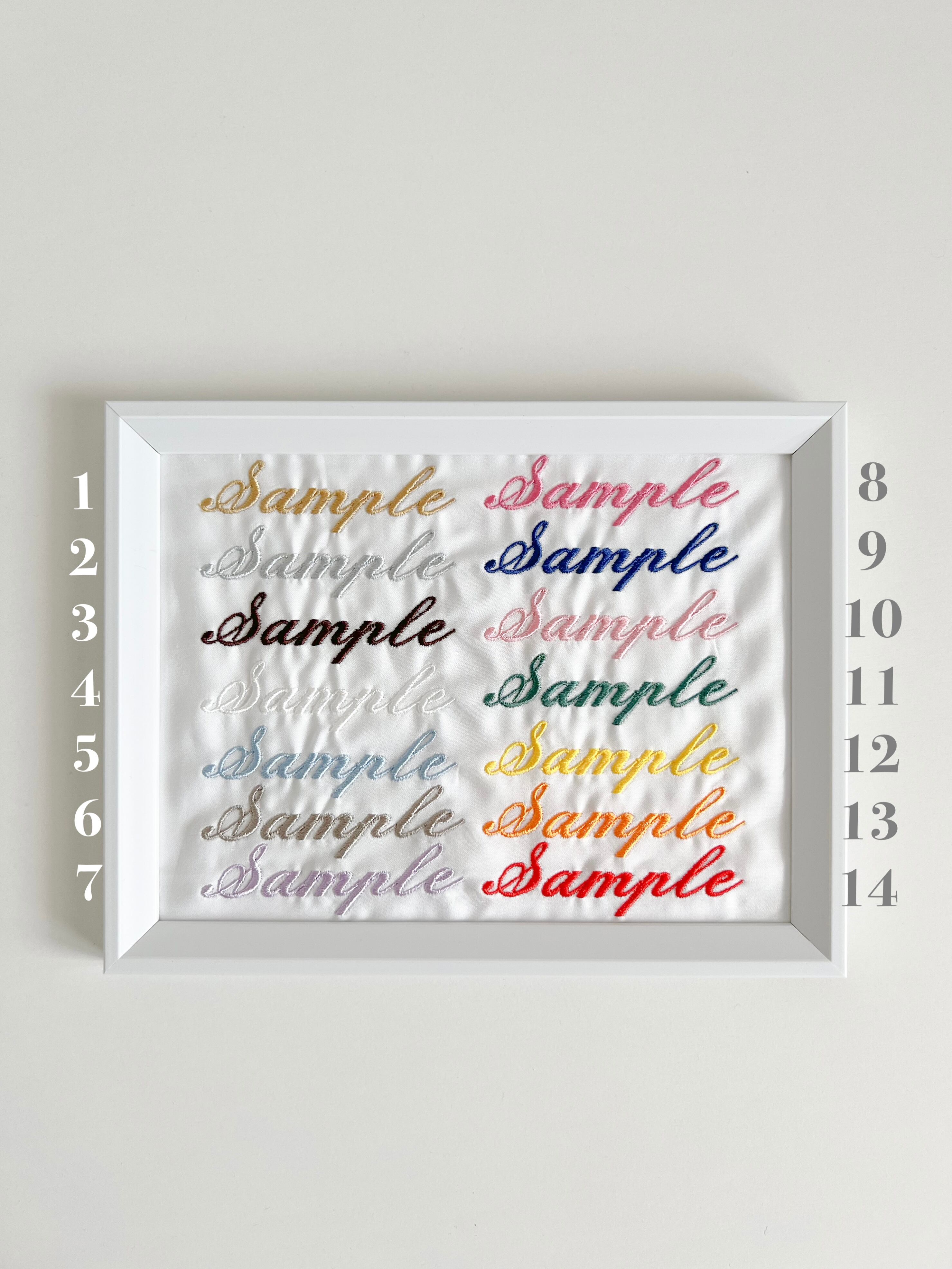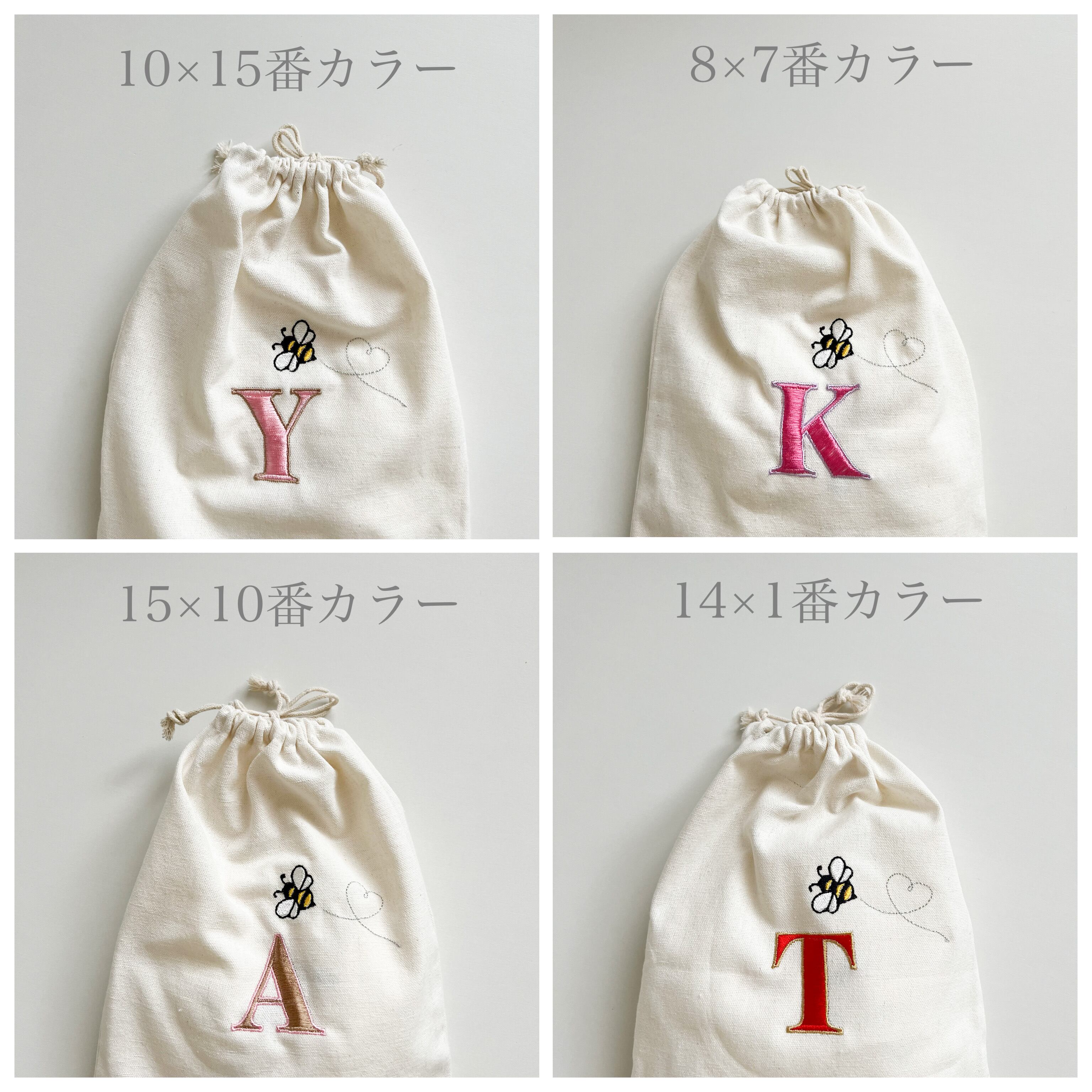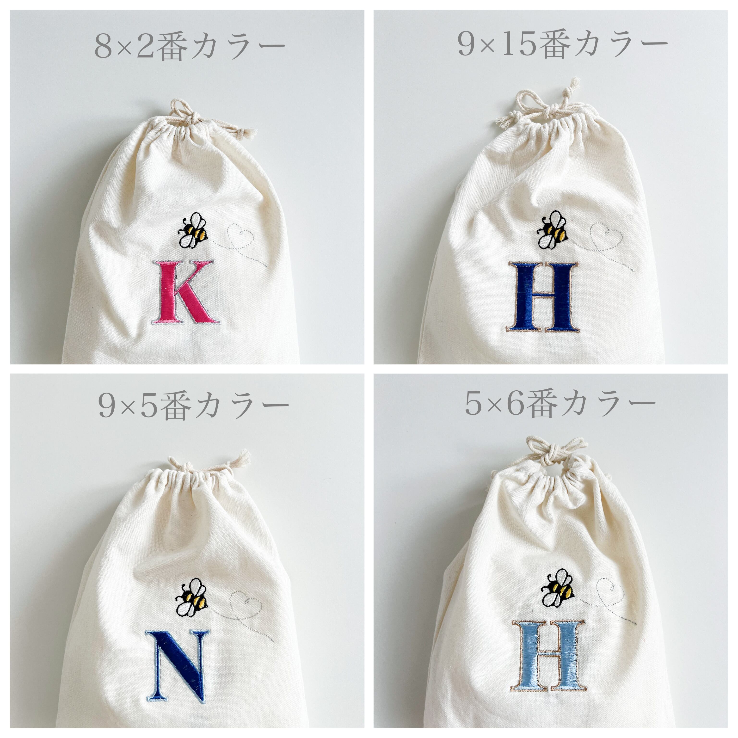 ● イニシャル文字、①塗り潰しカラー ②縁取りカラーがお選びいただけます