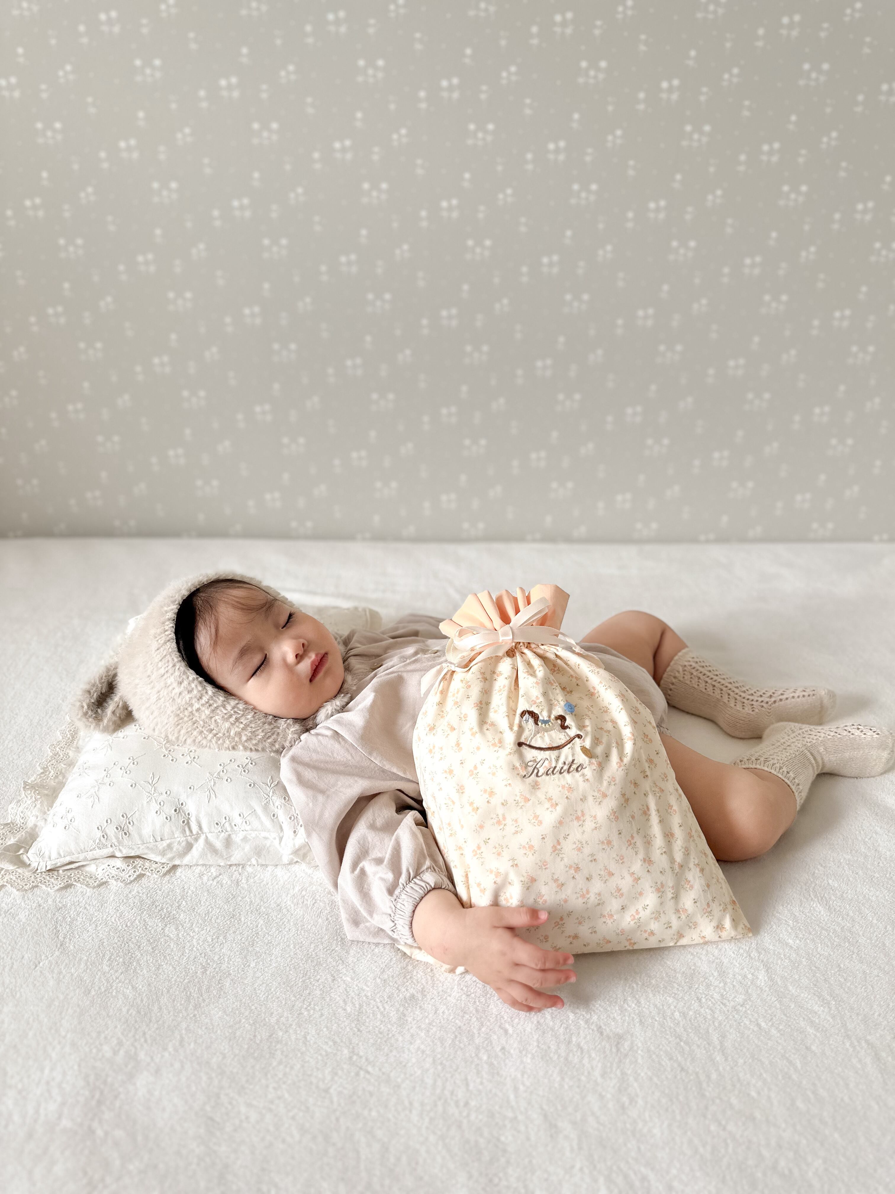 drawstring bag フラワー ミルキーピンク【S】巾着 / 名入れ 刺繍 ギフト