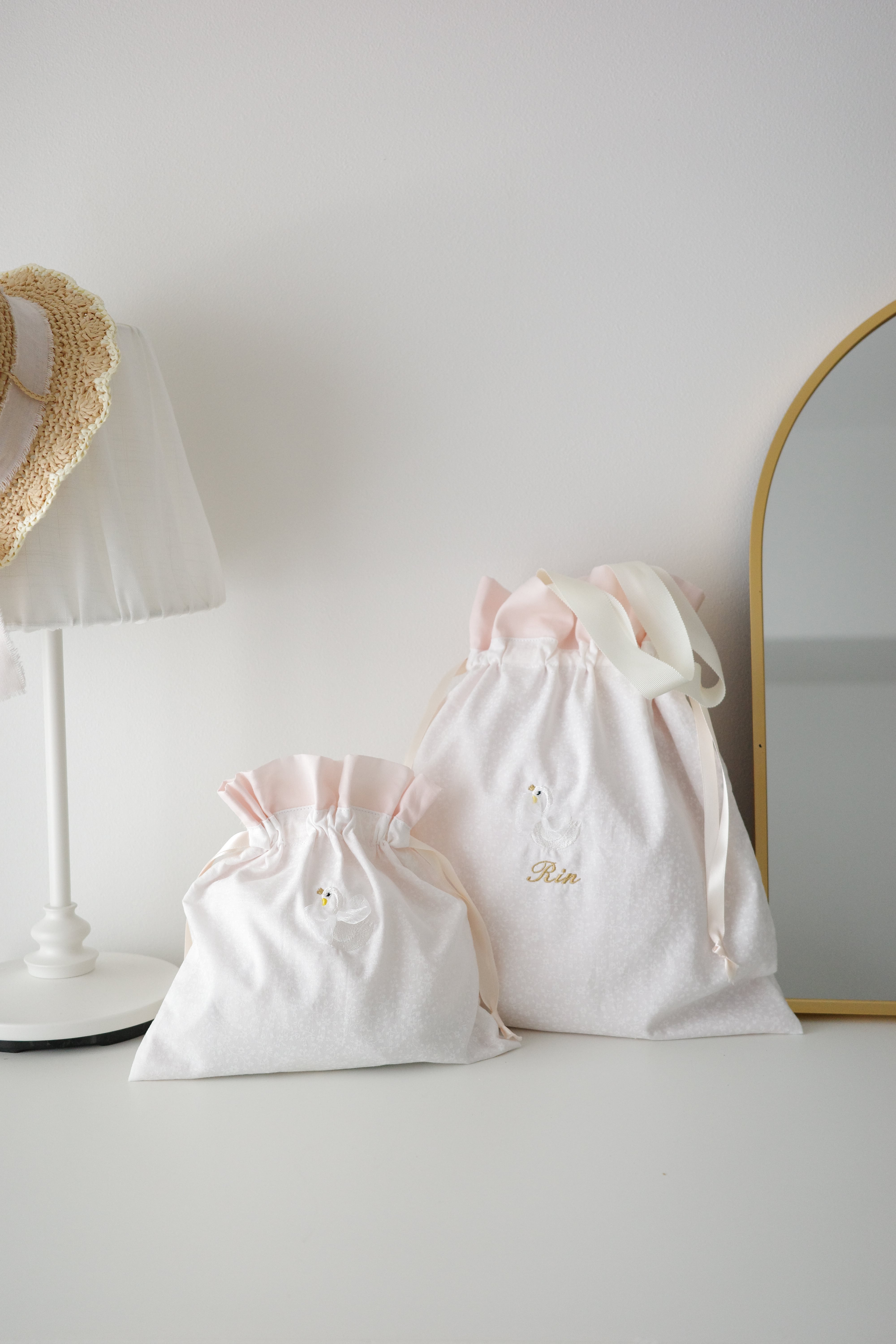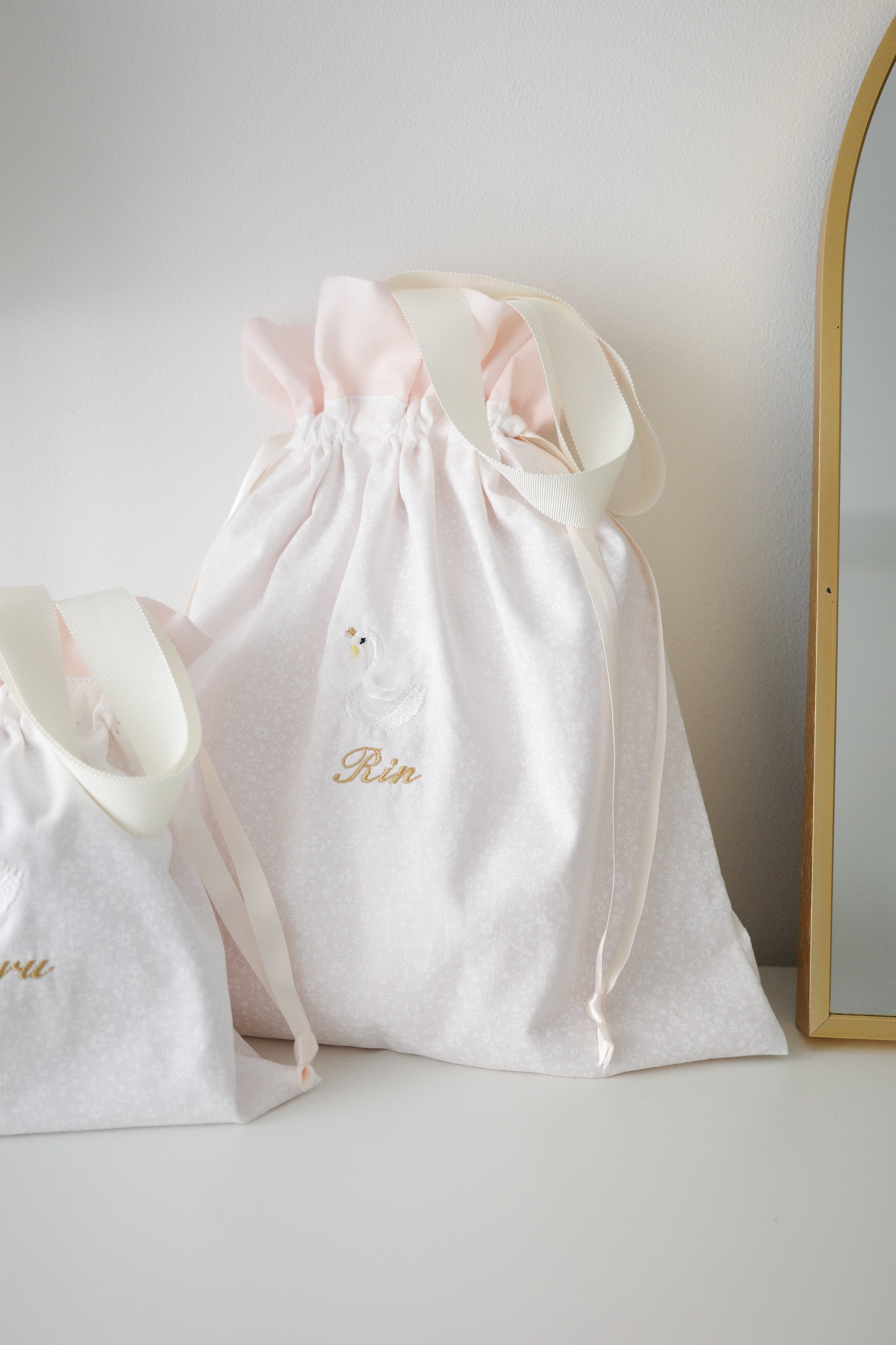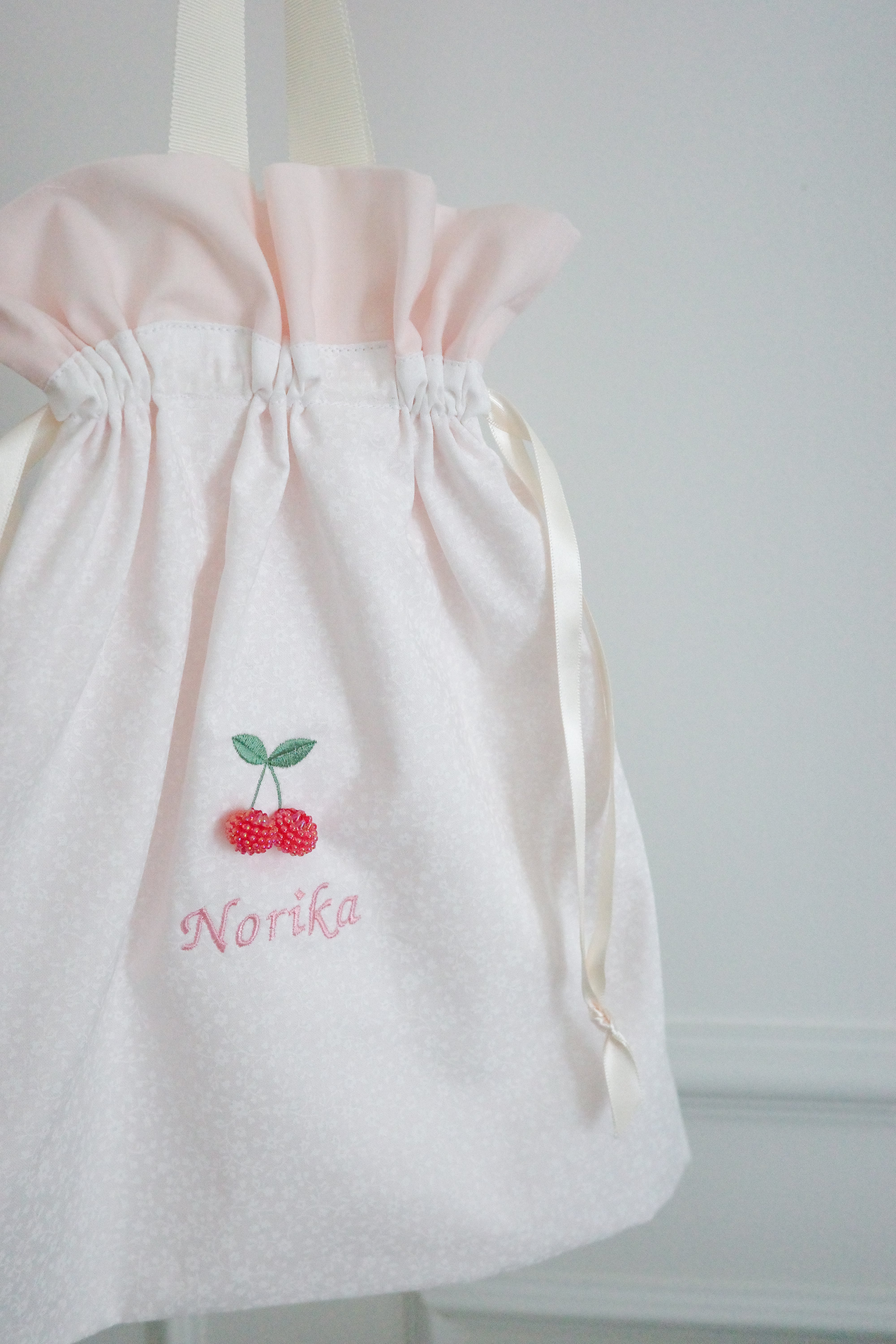 drawstring bag フラワーミルキーピンク【M】巾着 / 名入れ 刺繍 ギフト