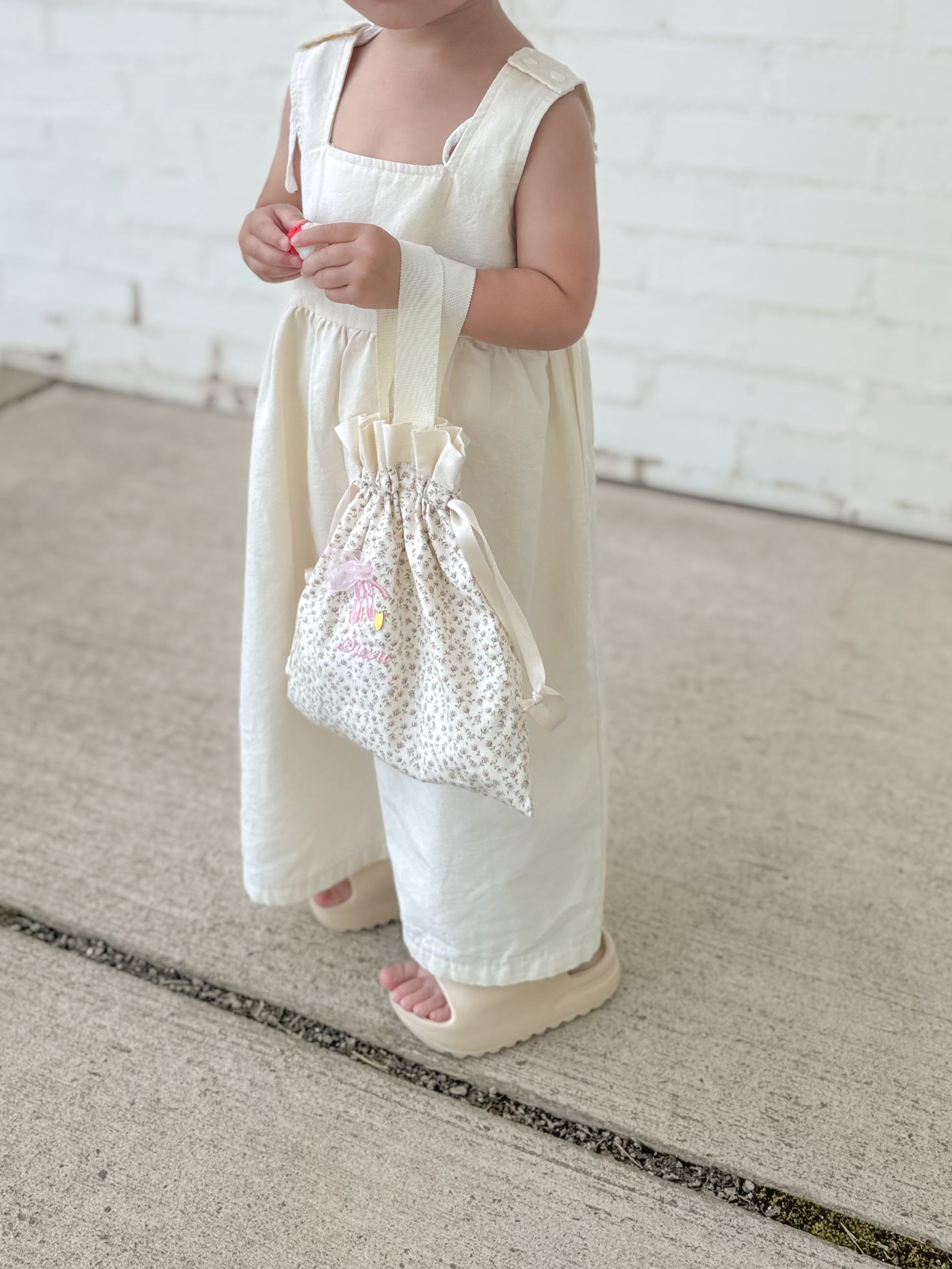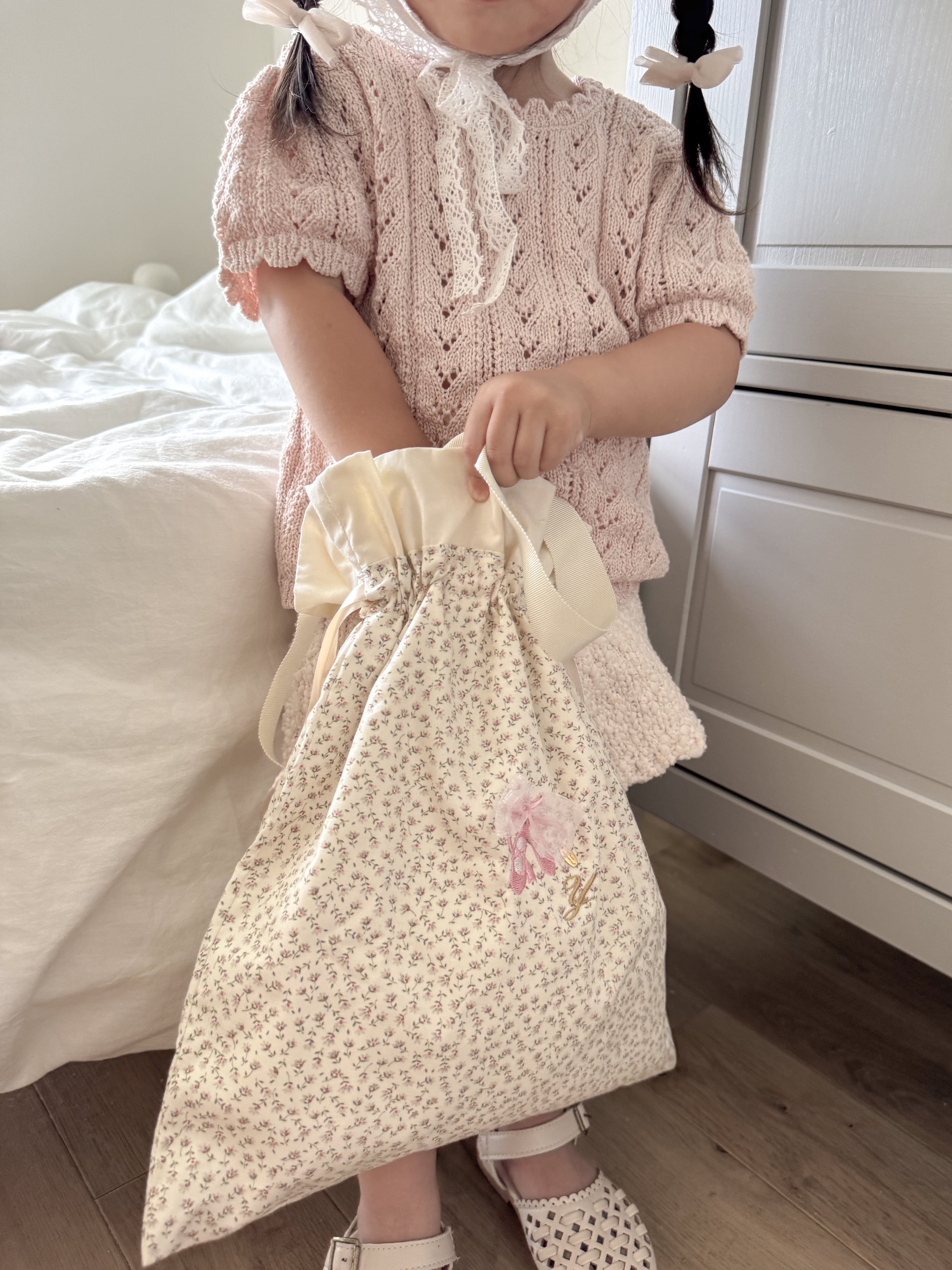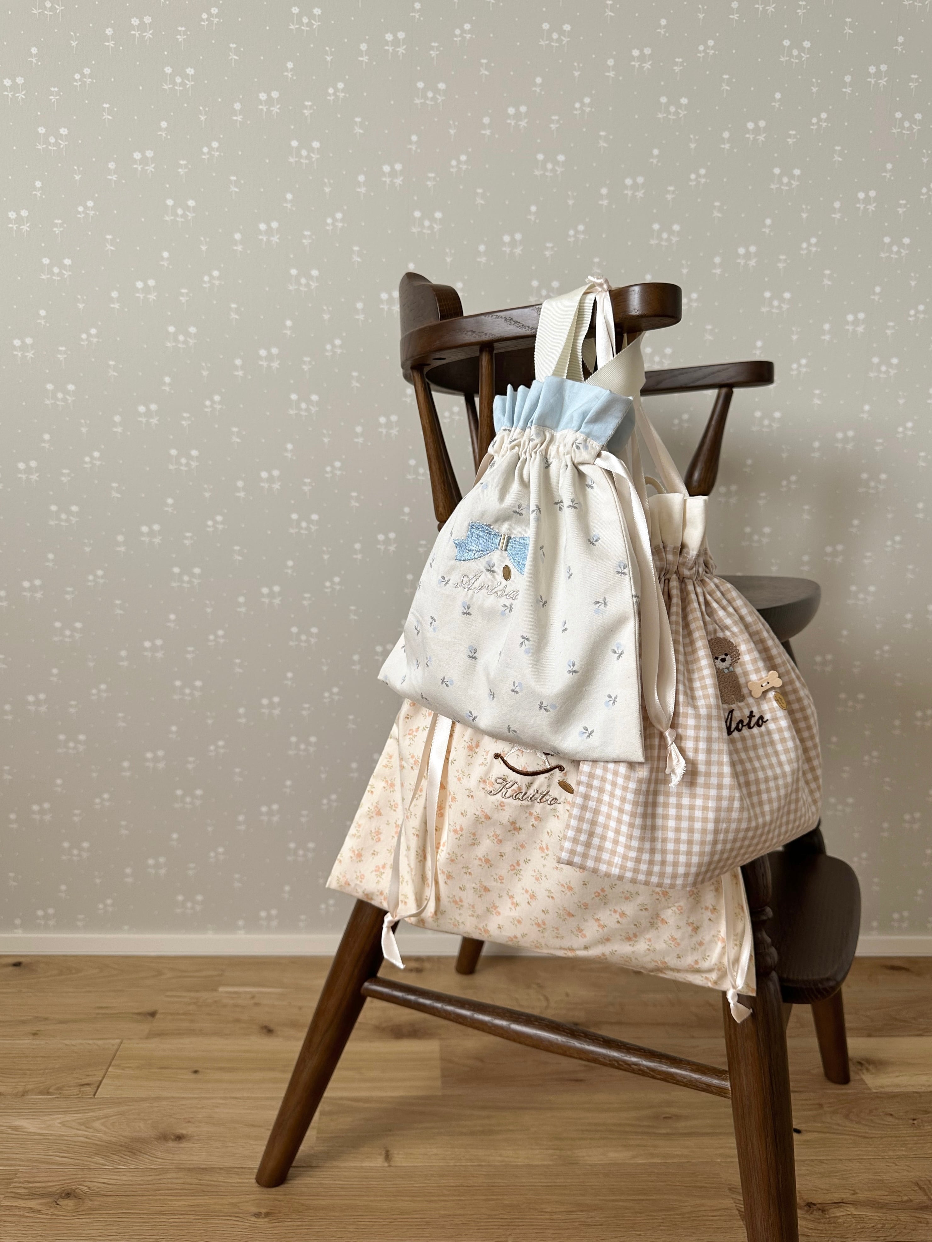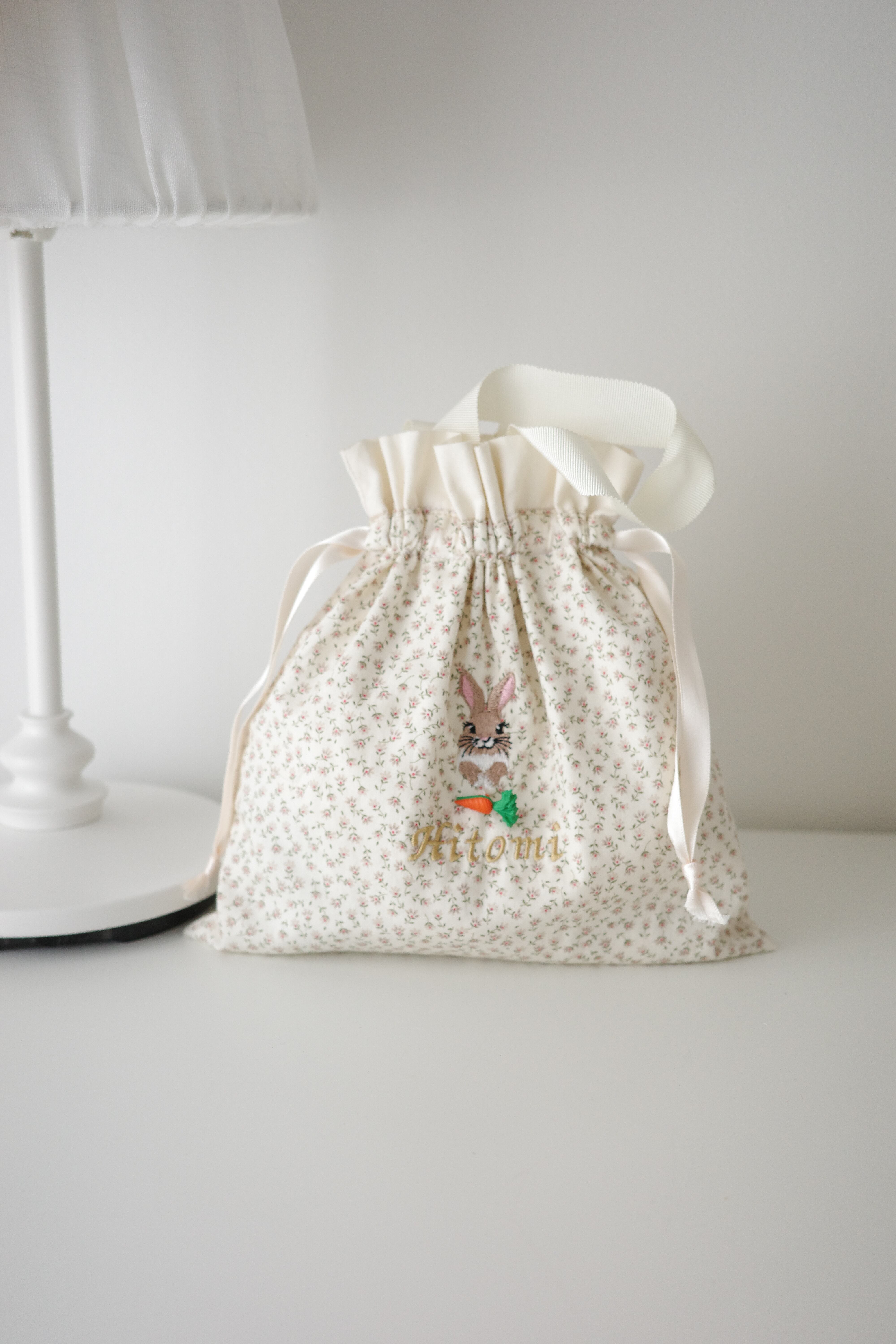 drawstring bag ベージュフラワー【M】/ 名入れ 刺繍 ギフト プレゼント
