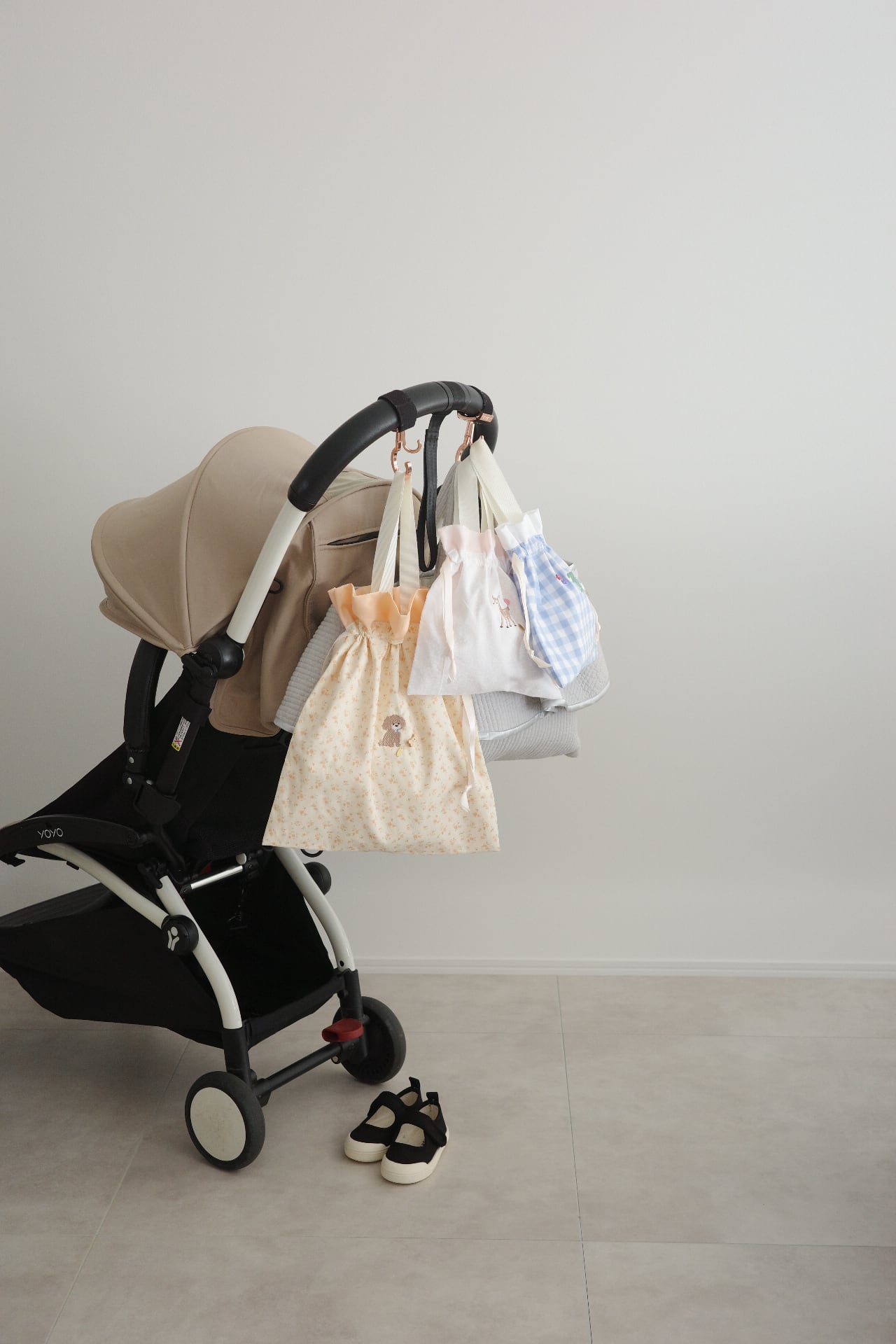 Mサイズは お子さまのお着替え1式が入るくらいの 大きめサイズ。旅行にも便利なサイズ感です。